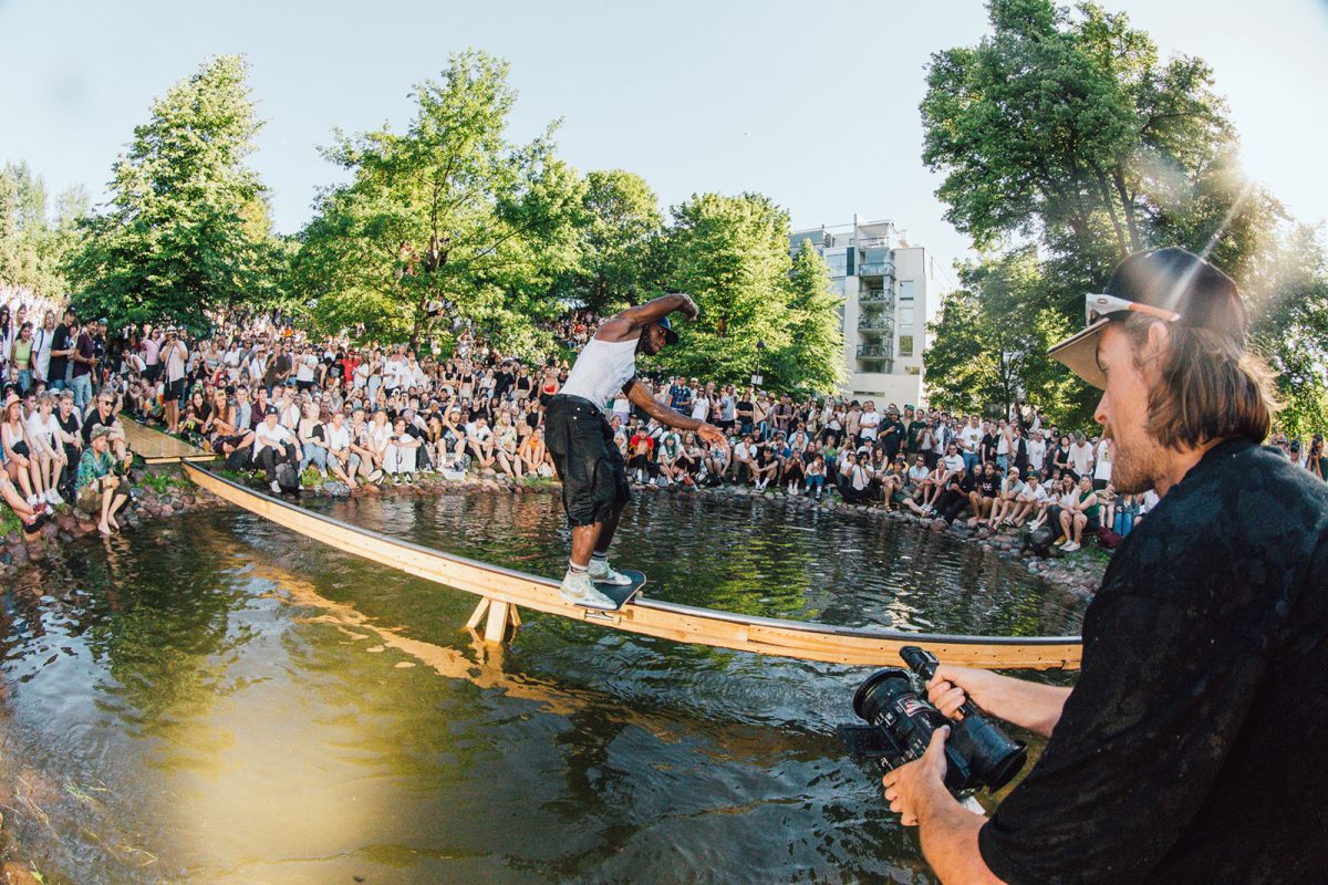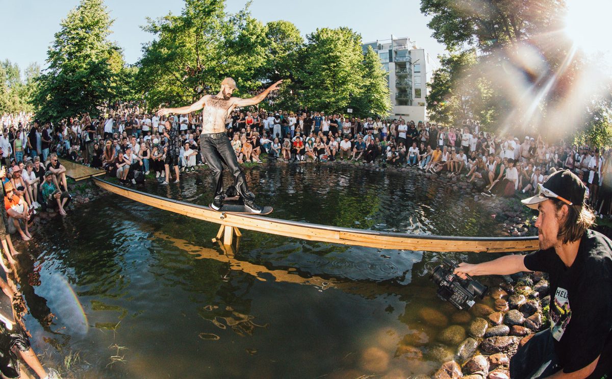 As for the rail this year, it’s been a fantasy of mine for many years now. And with the help of my friend Kyy at Helwood Oy, we made it happen. I honestly didn’t think so many people would even dare to try it. It was about 10.5 meters long, the water was shallow and the bottom is full of those big stones. The run-up and landing getting absolutely wet and slippery did not help anyone either!