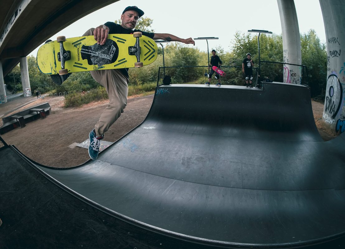 In a 1 hour circle around Dortmund there are plenty of other concrete skateparks and DIY spots (Münster, Essen, Cologne, Velbert, Hagen… just to name a few) but after a rainy morning at a roofed miniramp under a bridge we went to Oberhausen.