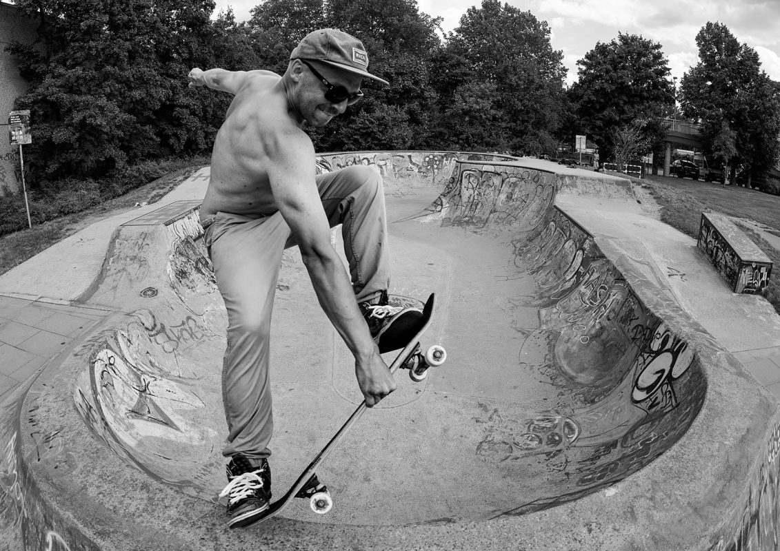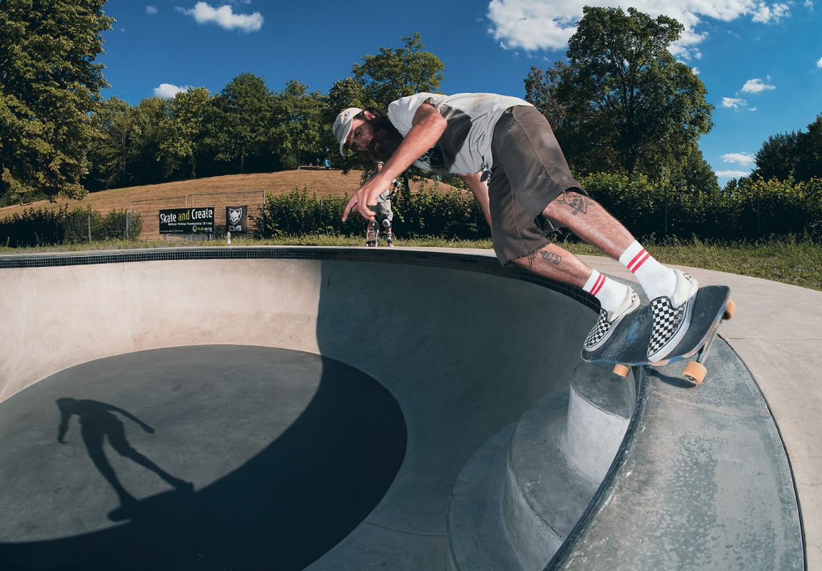 Next day on to a bowl that we found online on the way to Bonn. The park is called Ratingen West and when we arrived, we had to dry it first as the drainage was blocked. A local jogger stopped and said we are the first ones he sees skating here since months – appartenly not very popular. However, if you can appreciate some rough washed out concrete with partly weird shapes you will have a fun session here.