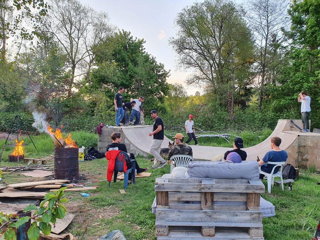 In addition, in the woods next to the skate hall is a small but fine DIY concrete mini ramp where the evening session began shortly after our arrival.