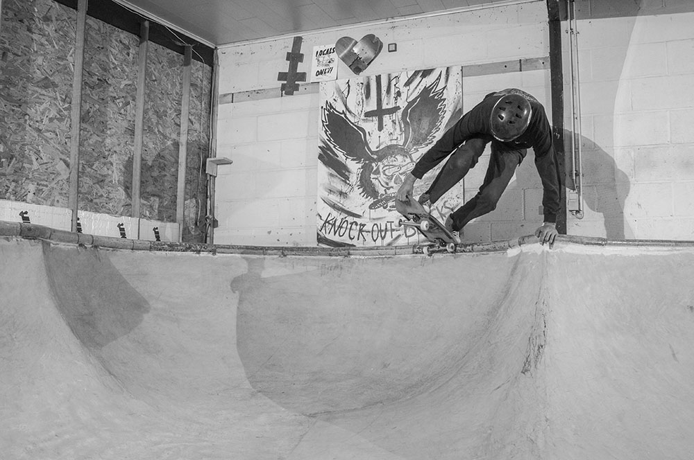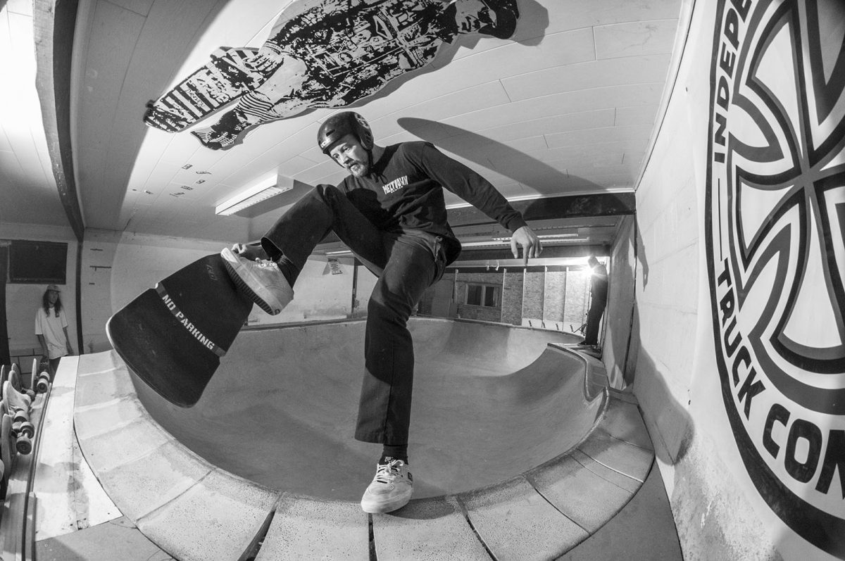 The entire old ramp is underneath the concrete, so I could set out the shape of the bowl pretty easily and fill the gaps with leftover plywood laying around our woodshop. That way I also really got a good look at the shape of the bowl and since it’s inside I didn’t need the concrete to be too thick. Putting the old transitions in as a foundation really helped to keep the concrete at an even thickness all around the bowl. Rebar was all leftovers from friends and the construction site across the street.