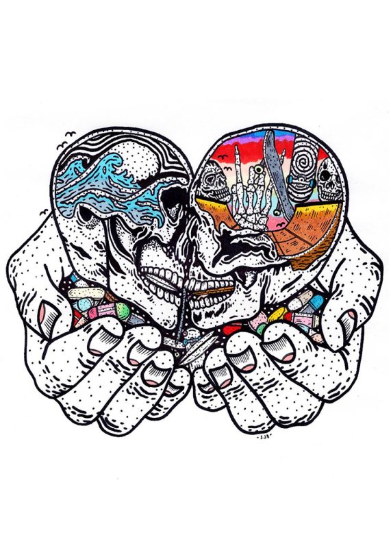 Do you draw while under the influence of psychedelic drugs, or do trippy images come naturally to your mind?