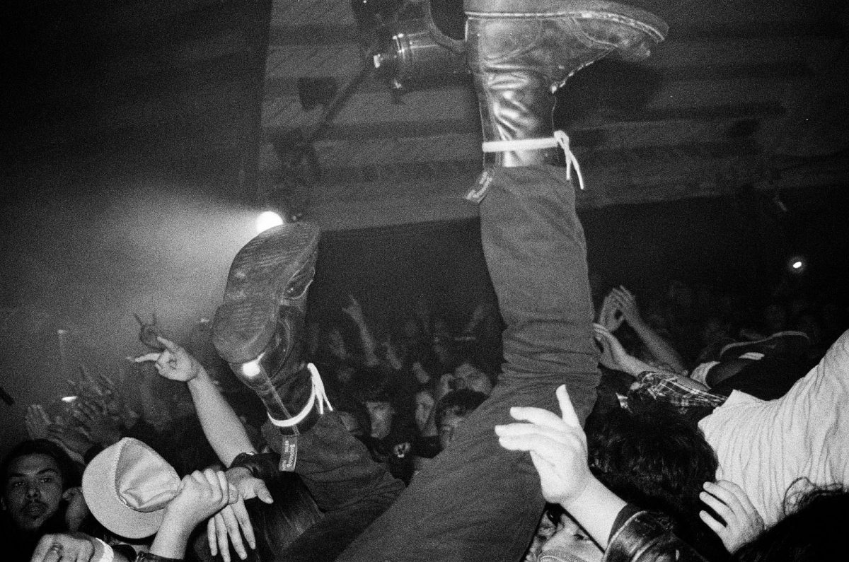 “With an unbelievably old, ripped up, Motörhead shirt on, the sickest pair of leather boots you’ve ever seen, a cig in one hand and an archaic piece of technology in the other, comes Olivia Jaffe. Like a spider carefully waiting for the moment to strike, often not disrupting the scene, just hanging in there tight till the time comes, she shoots to kill. A glorious person to spend a road trip or a couple years with if you’re beyond lucky. You’ll learn ten of your new favorite songs of all time and end up with a pile of polaroids of you in brutally honest and hysterically mischievous situations. She’s a lover and a fighter. Dig into her photos and dive head-first into a rock and roll universe you only ever dreamed of before.” – Josh Landau