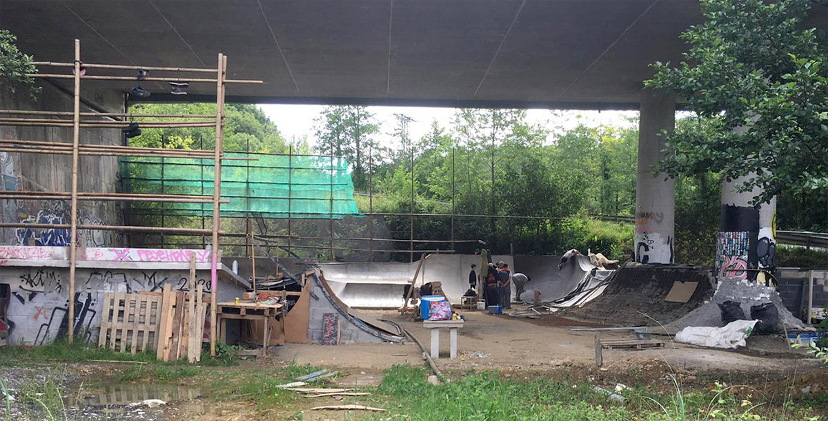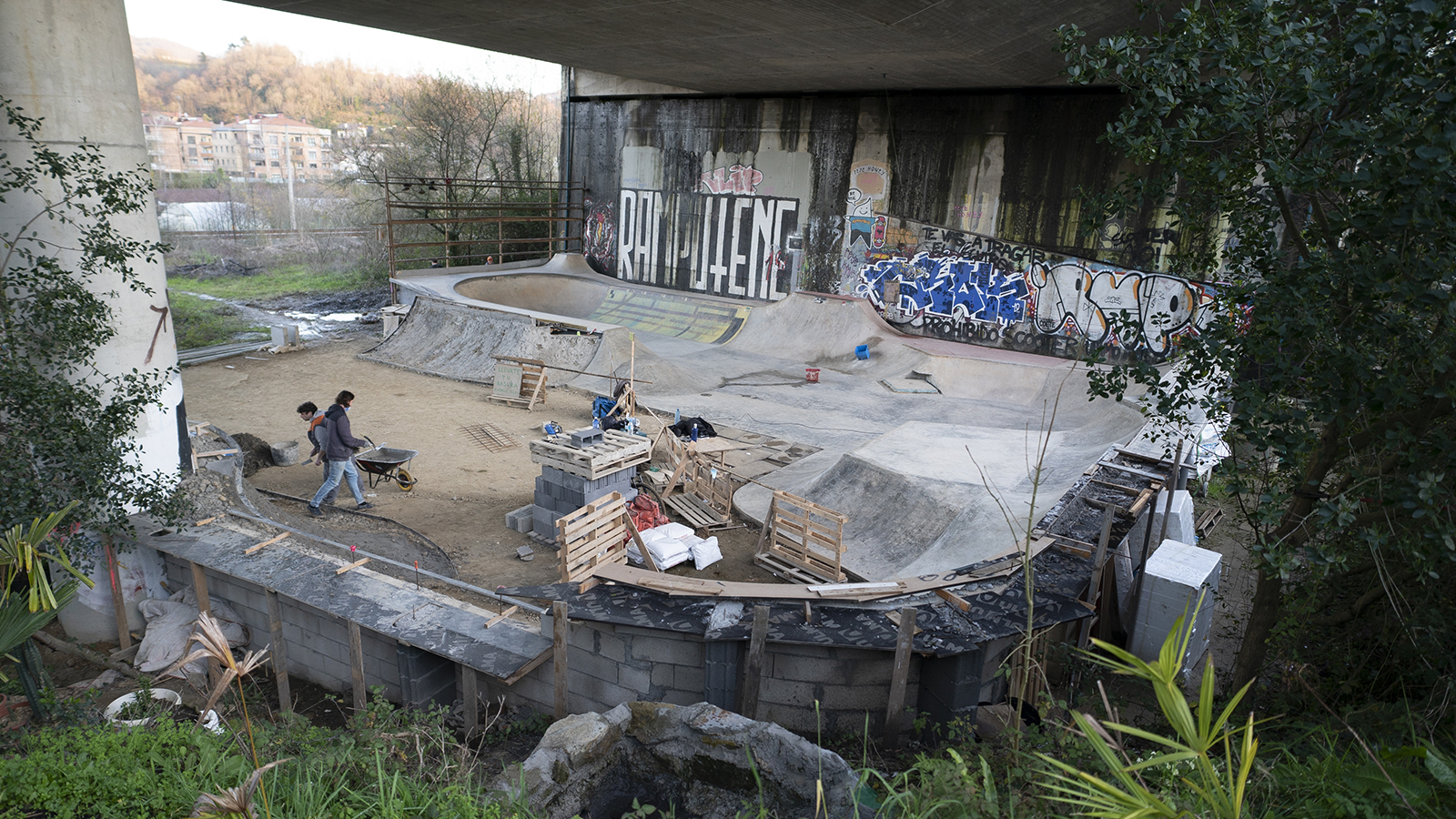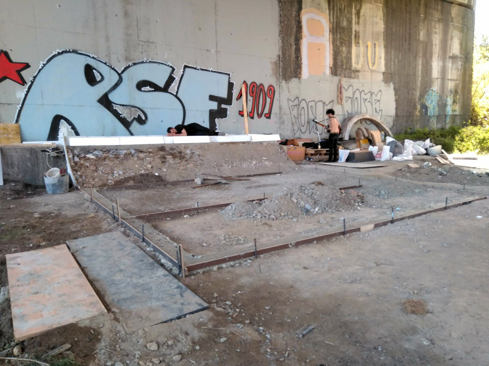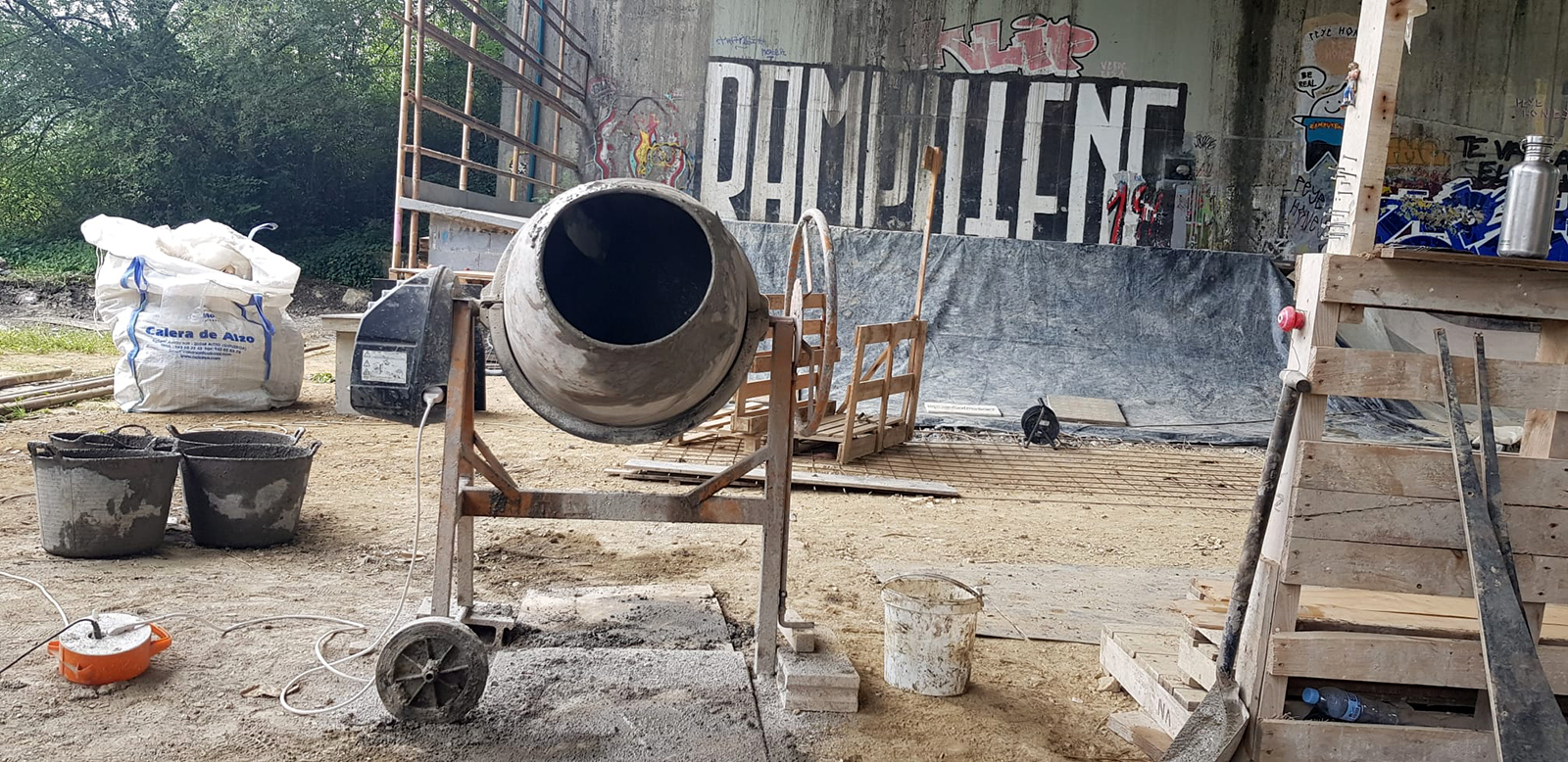 This all started in 2017… Peye lives nearby and walked his dog there and Urtzi rehearsed with his punk band close by. They had seen a place under the highway, quite large, but full of rubble and garbage, it was a fucking dump.