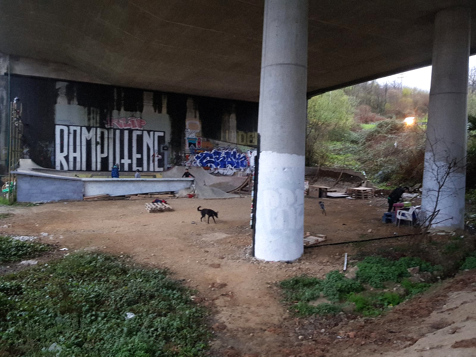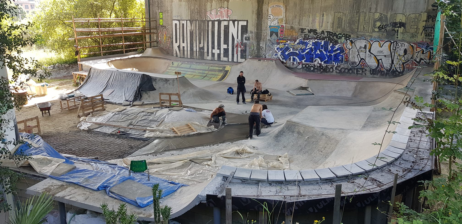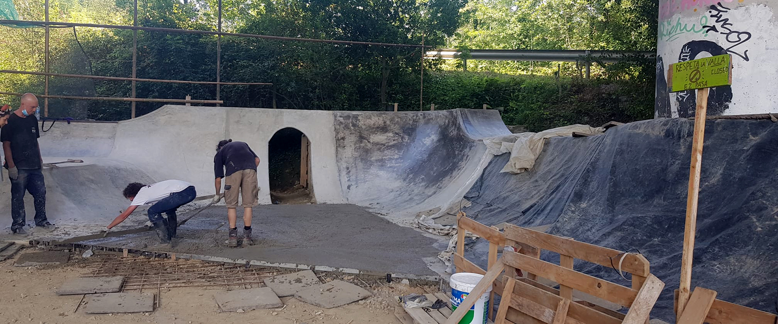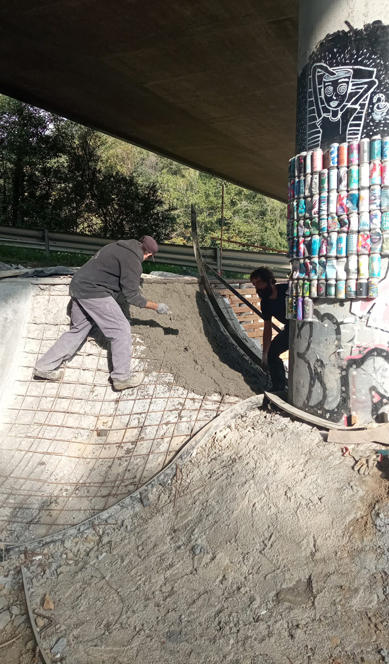This all started in 2017… Peye lives nearby and walked his dog there and Urtzi rehearsed with his punk band close by. They had seen a place under the highway, quite large, but full of rubble and garbage, it was a fucking dump.