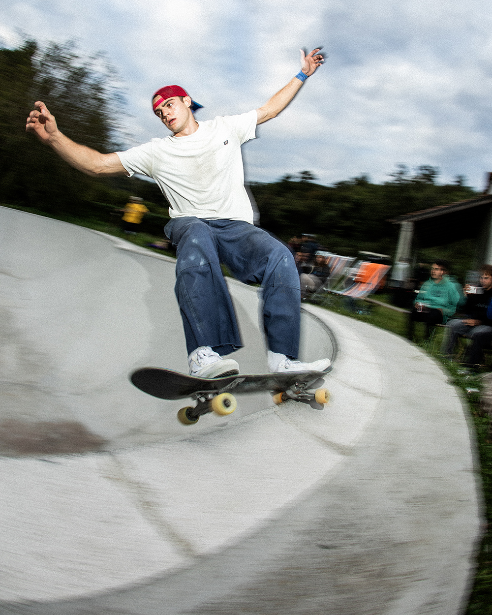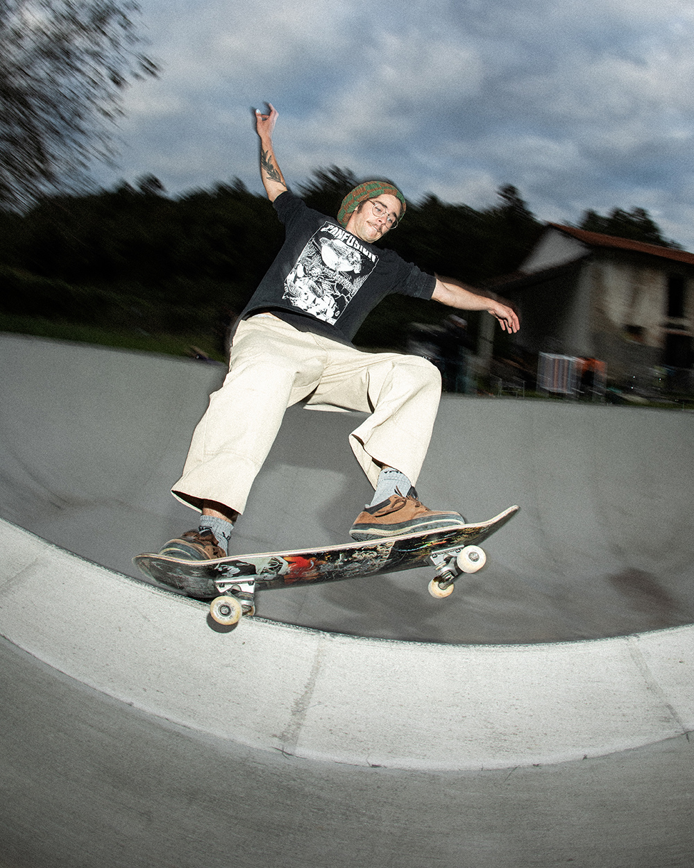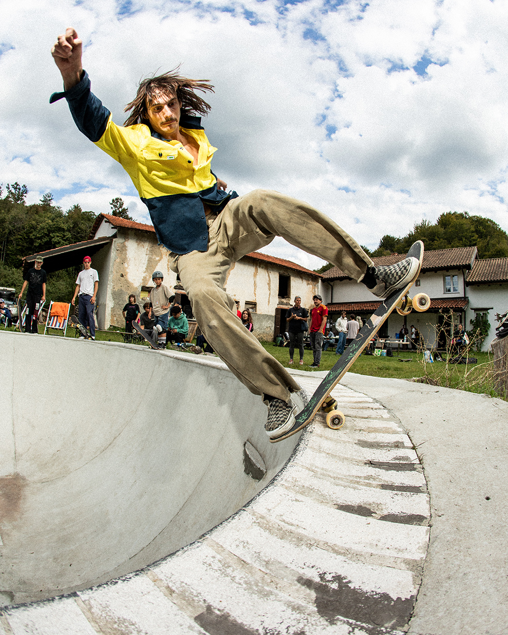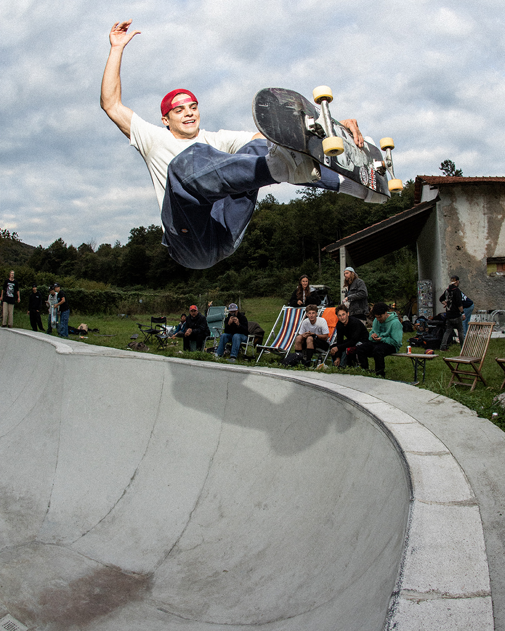 Skaters showed up not only from all over Italy but also from across Europe. A French crew led by Guillaume Mocquin lit up the session, while Evrim Avci from Switzerland dropped some insane technical flavor. But in the end, the locals owned the concrete. Andrea Calgaro and Indro Martinenghi know every inch of Wildbowl’s transitions, and Indro locked down the Best Trick NBD: a frontside noseblunt slide on the corner extension after countless slams and sketchy attempts. Heavy.