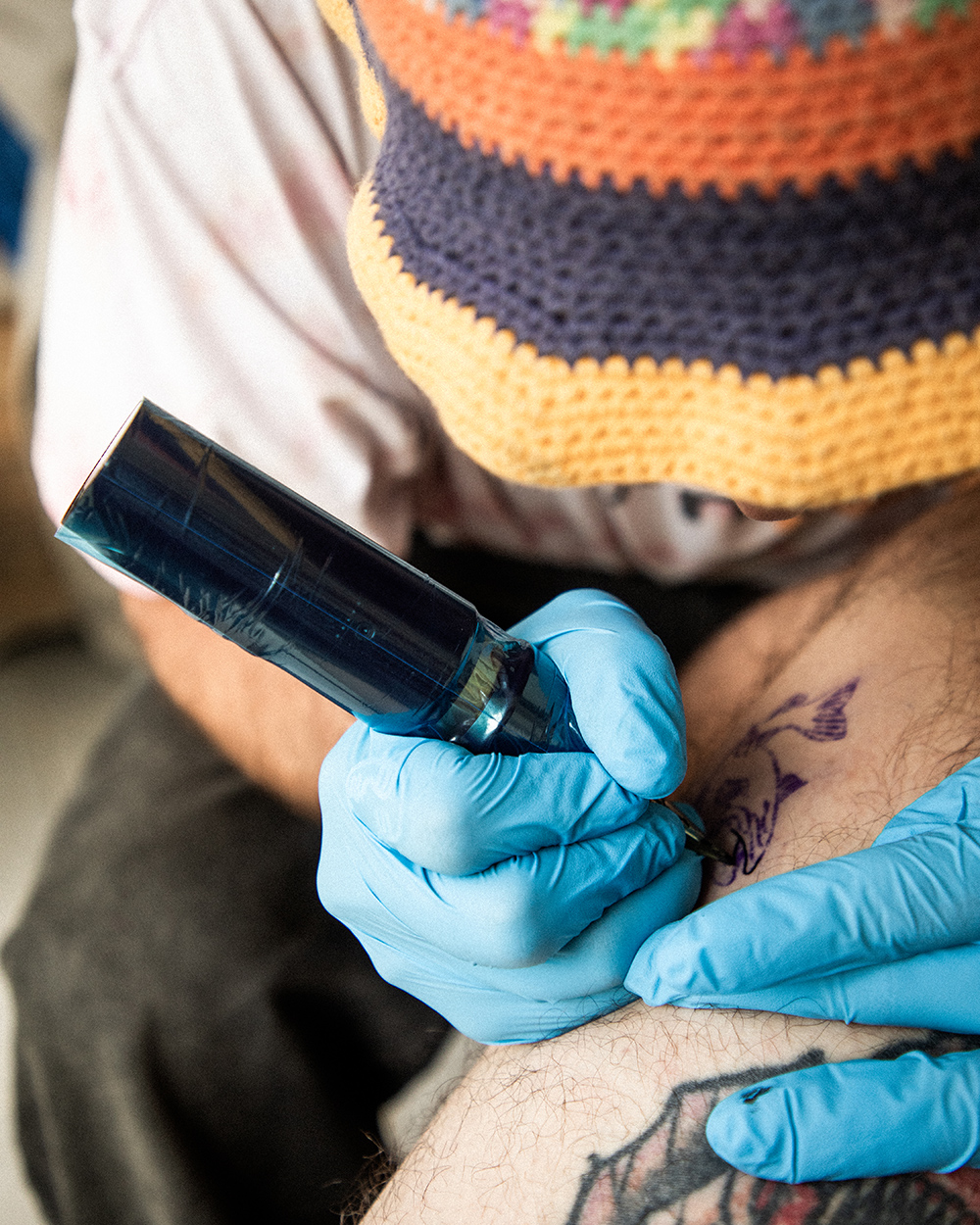 Johnny Lella was on fire all night, dropping Stick’n Pork flash tattoos inspired by the Wild Animals series — the same graphics painted on Neanderthal’s everslicks. Meanwhile, Niccothekiwi kept everyone awake with a UK garage DJ set, pushing us through the sudden drop in temperature.