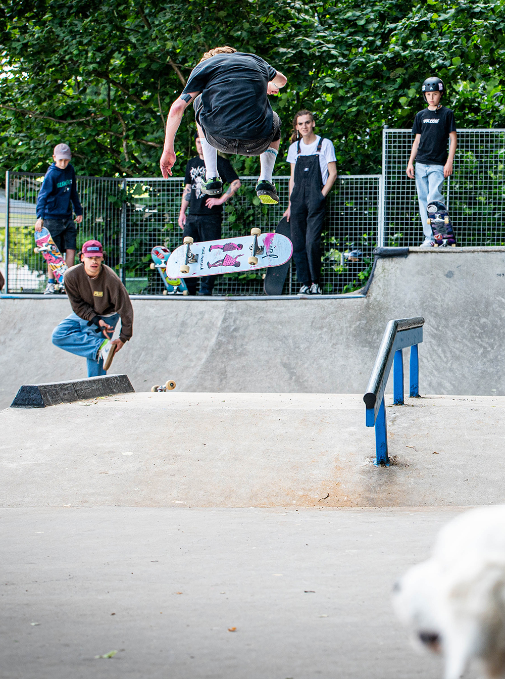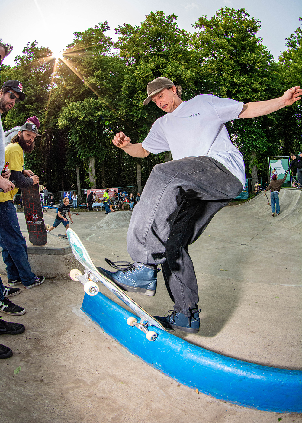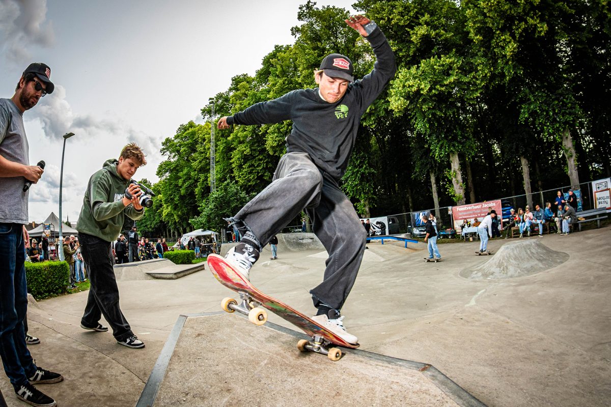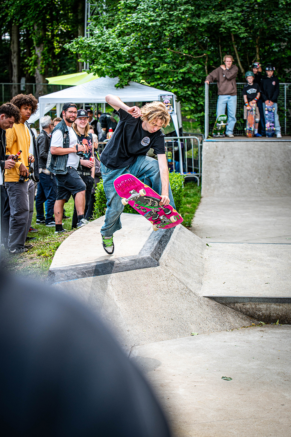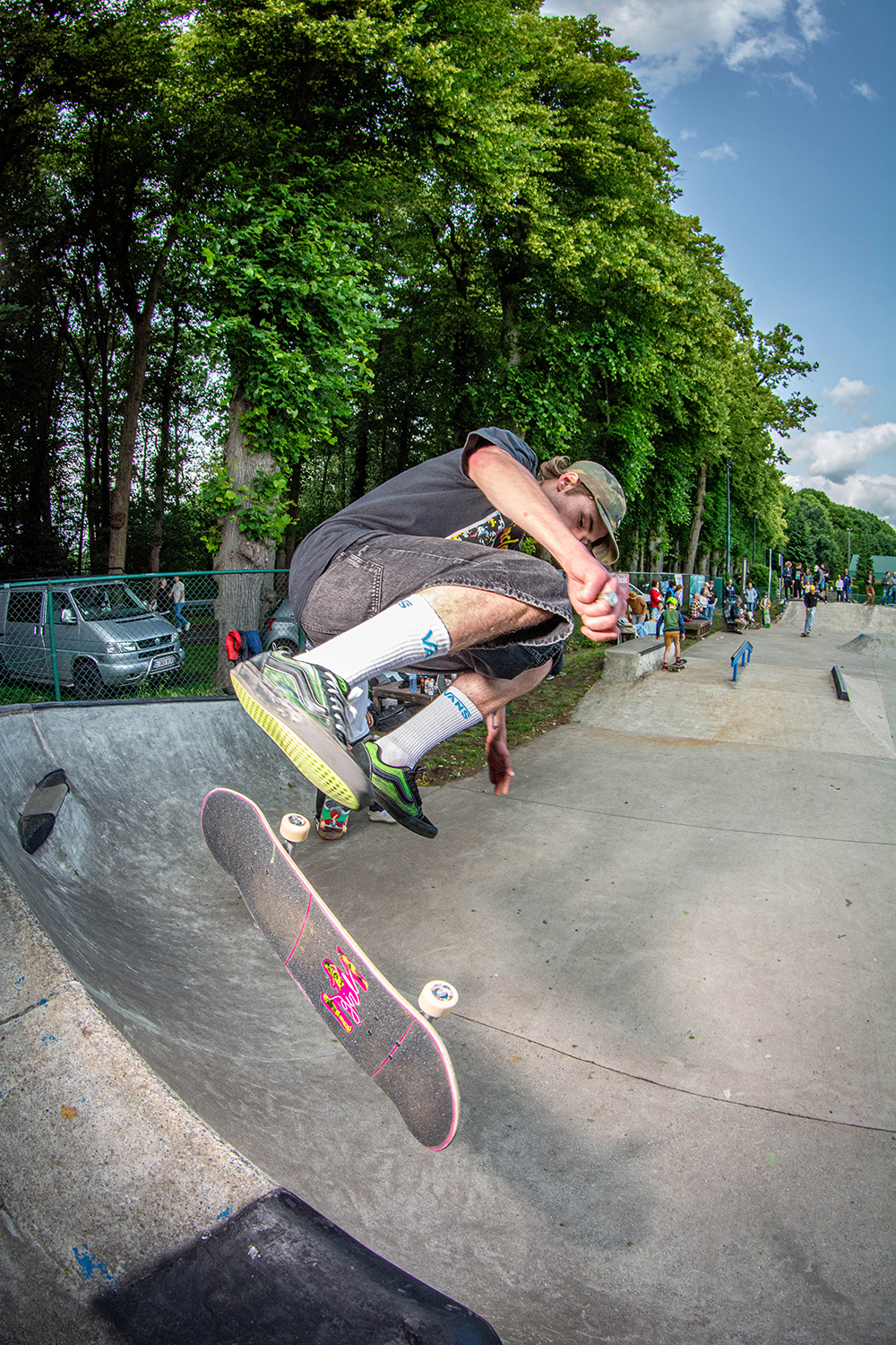 After the kids were done, it was time to test out our new obstacles: This year we tackled the rail, and the low bank got an update by setting a beautiful slappy upon it. Once again, everyone skated with gusto, both from the transition generation and the technical skaters. As every year, the bowl jam was the highlight of the day with dudes like Pieter De Clus, Ellis Ekkart, Tor Van Eysendeyk, Thibeau Cuynen and a dozen more who seem to skate the beast better by the year.