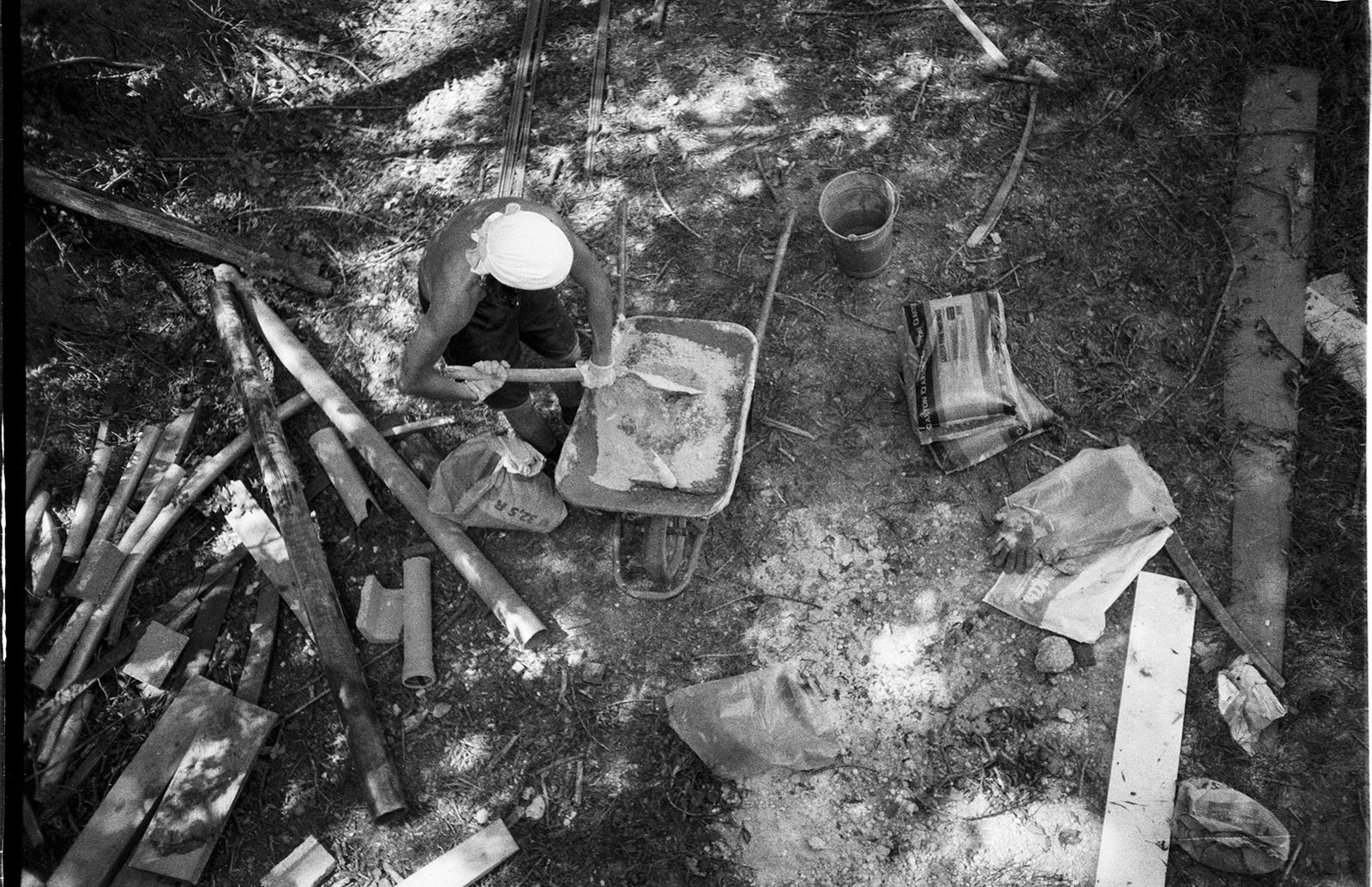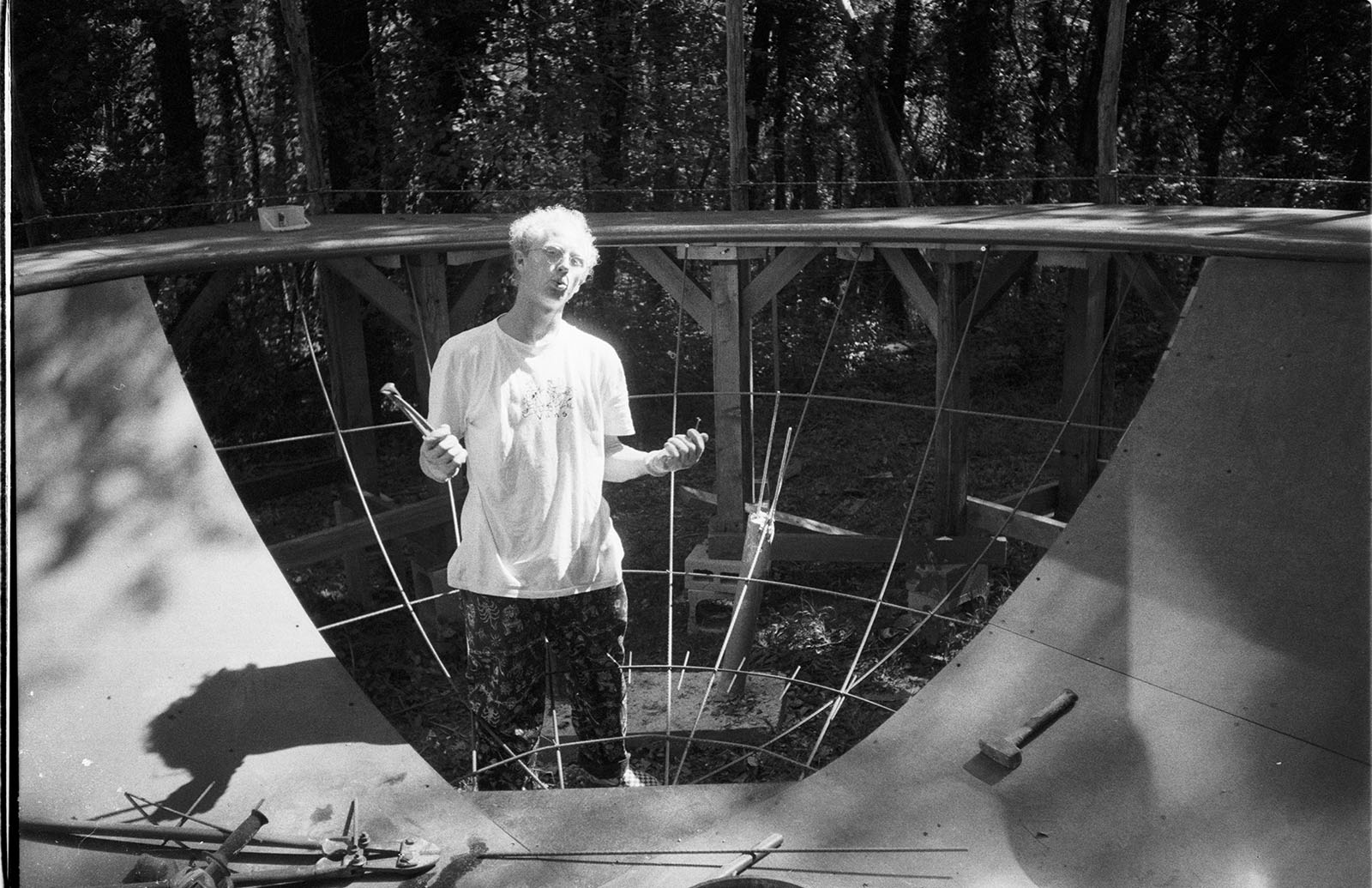 The design needed to change because the original shape was pretty boring and we wanted to build a smaller but wider mini bowl. So I sat with Pietro De la Pierre, a good friend of mine and an amazing skatepark designer, and considering the materials we had, we designed this heart shaped bowl. I only had to buy some wood to complete the flat and the decks but 85% of the overall materials came from that old wooden ramp.