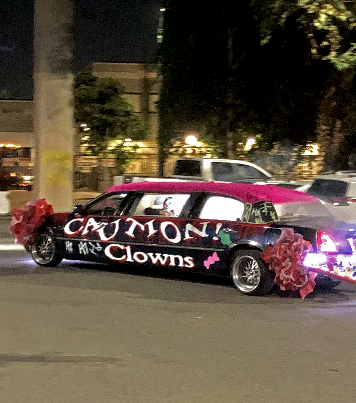 An event of this magnitude invites many ghouls. Like a woman babbling half-speak incantations, flashed smiles and then some. Passersby slithered in and grabbing drinks. Even a clown car, replacing the stereotypical tiny vehicle for a limo, exuded fog and a bright otherworldly glow.