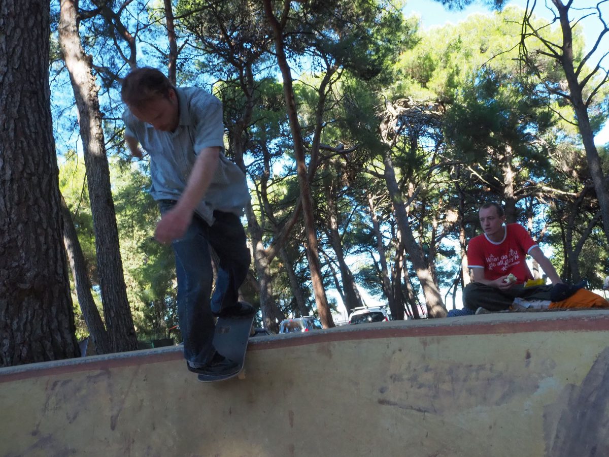 After Zgosa things went really quick. We stoppd at the legendary Pumpa DIY but didnt skate…we had to leave something for next year. Checked out the construction, Maestruli had siesta and me backpain so we just had a Schnitzel and realxed. Met some random local that we convinced to go to Fazana, if you are reading this it was the best moment of the trip haha. We met this guy 5 days later in Pula and the hype was OOON!