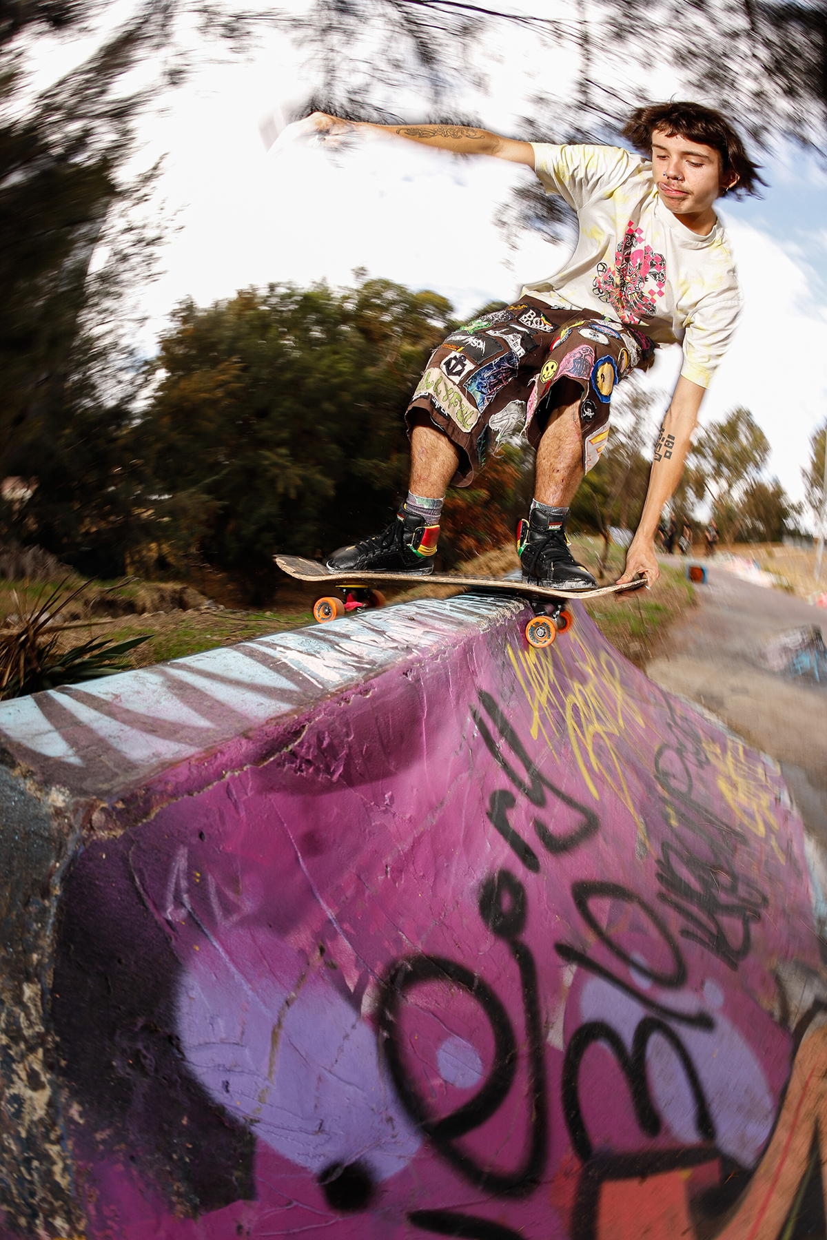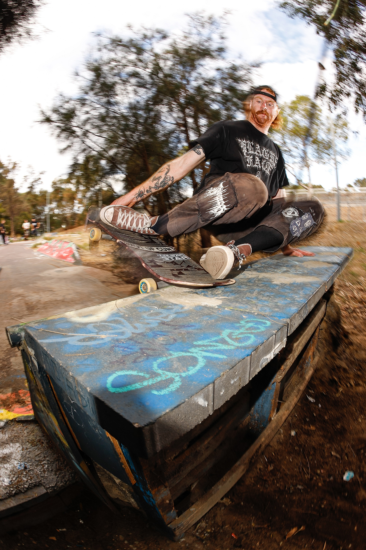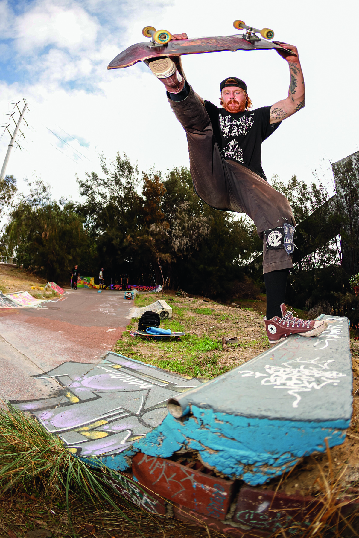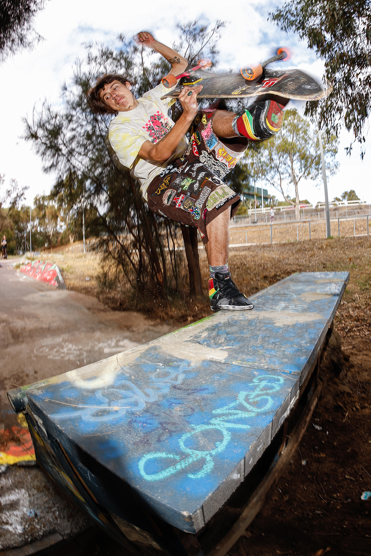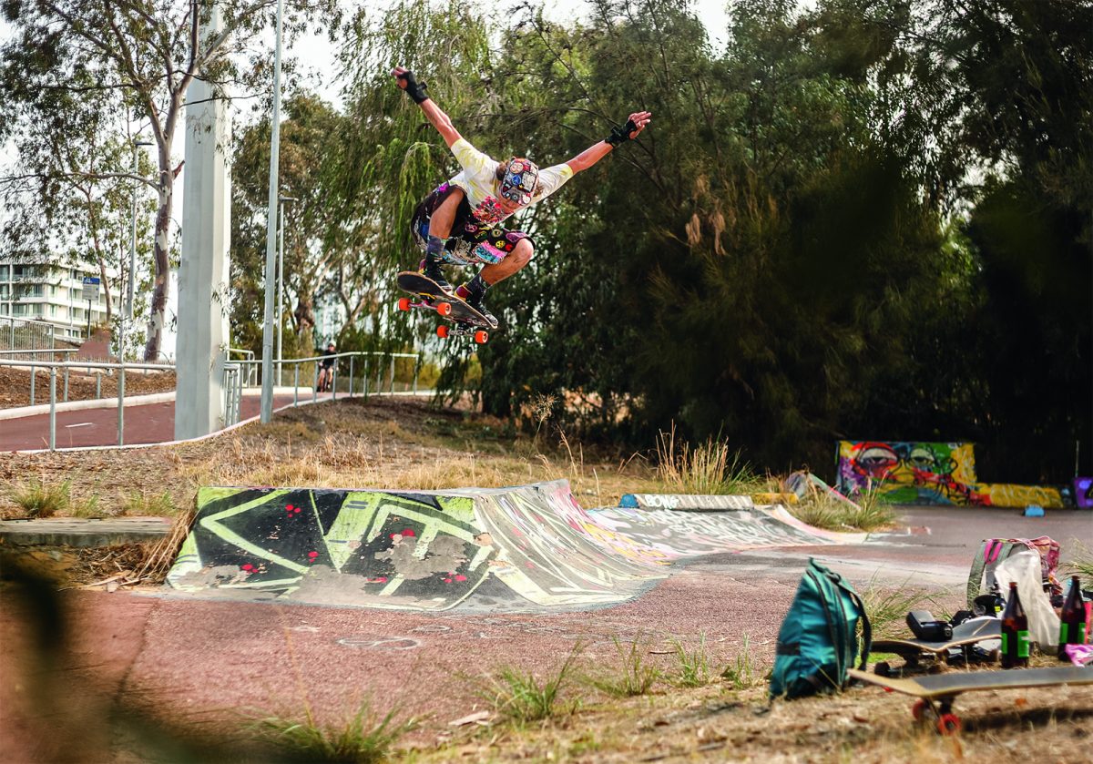 On the note of pests, the location of the DIY seemingly leads to strange characters rolling through. Situated next to a dead power plant, right on the banks of the Swan River (bull sharks snapping away at any skater brave enough to score buckets from the gloomy waters), and next to a popular bike path, the DIY has seen its fair share of interesting people, ranging from middle aged dads throwing a shakka at us while flying along on their carbon fibre electric skateboard that they blew their entire tax return on, local crackheads giving us their two cents on life, God, the universe at large and the price of cigarettes (typically before disappearing into the bushes), all the way to vloggers trying to document every cool thing outside of their tiny sheltered golden triangle in the city. A man approached us once, wearing hi-vis and carrying nothing but a shifter, gave us a thorough explanation as to why copper wiring is so expensive, why guns should be legal, and how shit the security systems (automatic machines that start blaring out warning signals through bullshit loud speakers) were on the abandoned power plant. After this short and somewhat intense discussion, he lit a smoke, disappeared into the bushes, and was never seen again – he did set some alarms off though, and some say they heard a scream off in the distance – but again, these myths have never been confirmed.