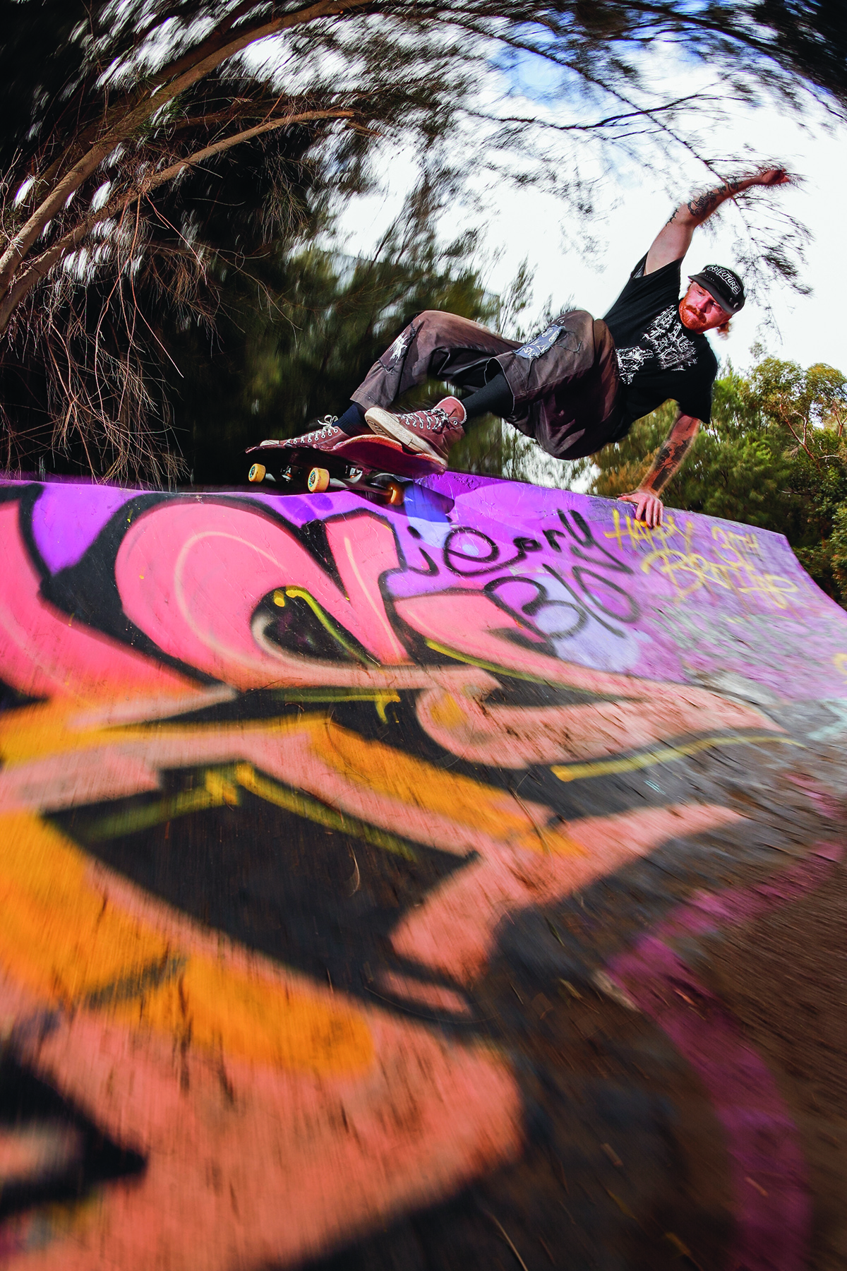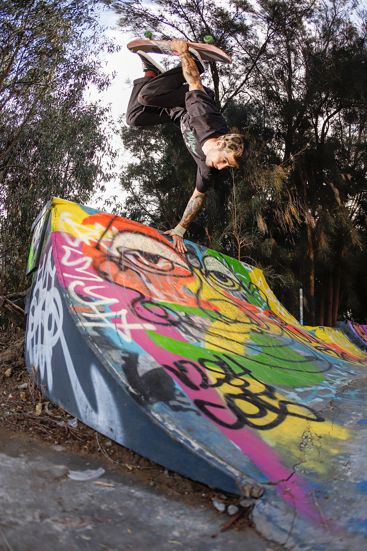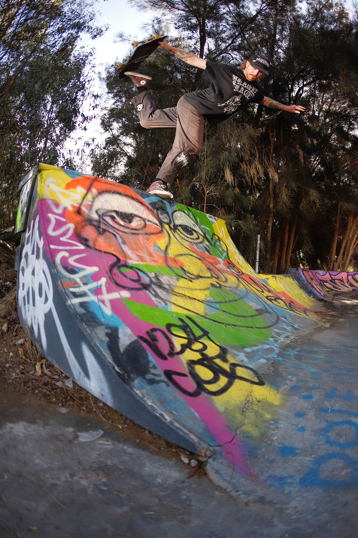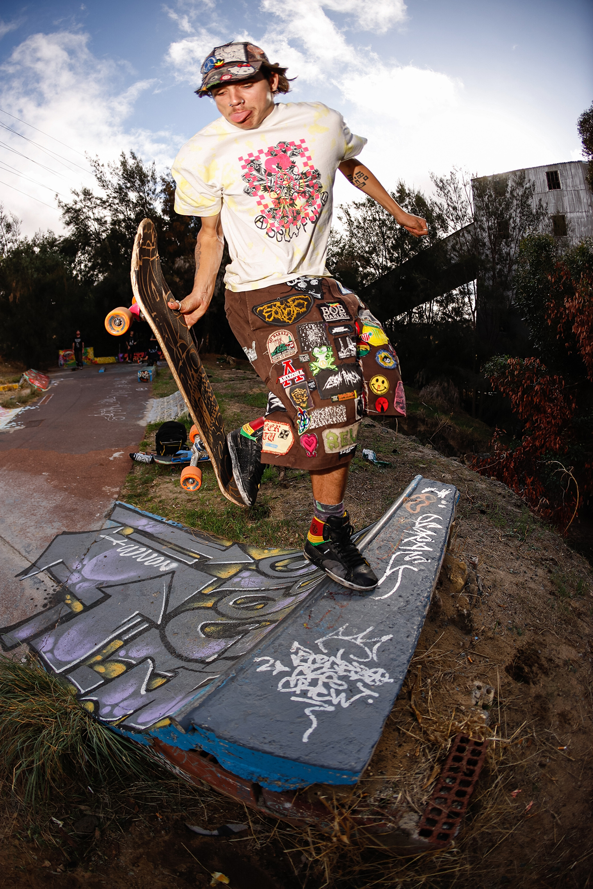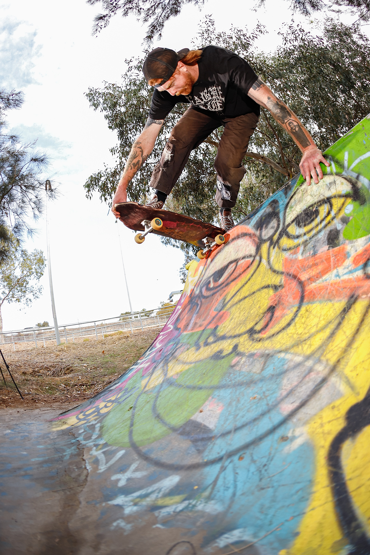 On the note of pests, the location of the DIY seemingly leads to strange characters rolling through. Situated next to a dead power plant, right on the banks of the Swan River (bull sharks snapping away at any skater brave enough to score buckets from the gloomy waters), and next to a popular bike path, the DIY has seen its fair share of interesting people, ranging from middle aged dads throwing a shakka at us while flying along on their carbon fibre electric skateboard that they blew their entire tax return on, local crackheads giving us their two cents on life, God, the universe at large and the price of cigarettes (typically before disappearing into the bushes), all the way to vloggers trying to document every cool thing outside of their tiny sheltered golden triangle in the city. A man approached us once, wearing hi-vis and carrying nothing but a shifter, gave us a thorough explanation as to why copper wiring is so expensive, why guns should be legal, and how shit the security systems (automatic machines that start blaring out warning signals through bullshit loud speakers) were on the abandoned power plant. After this short and somewhat intense discussion, he lit a smoke, disappeared into the bushes, and was never seen again – he did set some alarms off though, and some say they heard a scream off in the distance – but again, these myths have never been confirmed.